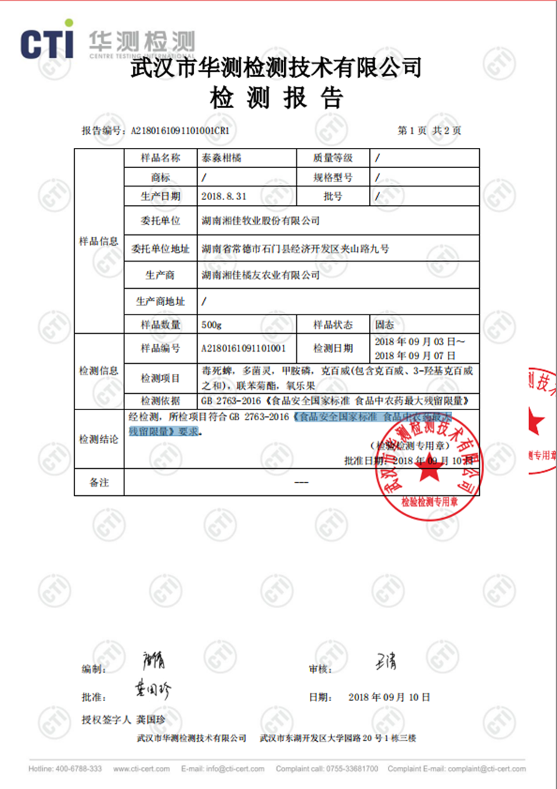 石門泰淼柑橘符合《食品安全國家標(biāo)準,食品中農(nóng)藥最大殘留限量》要求。