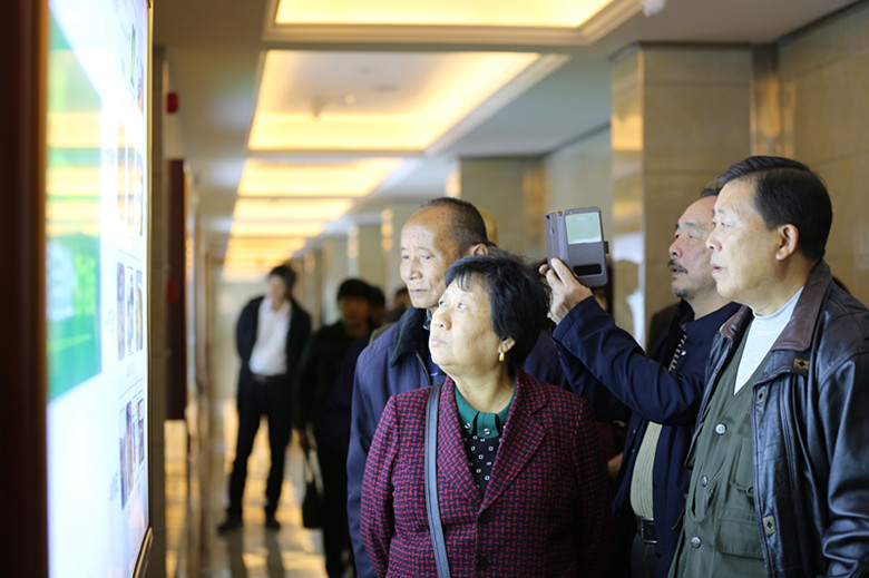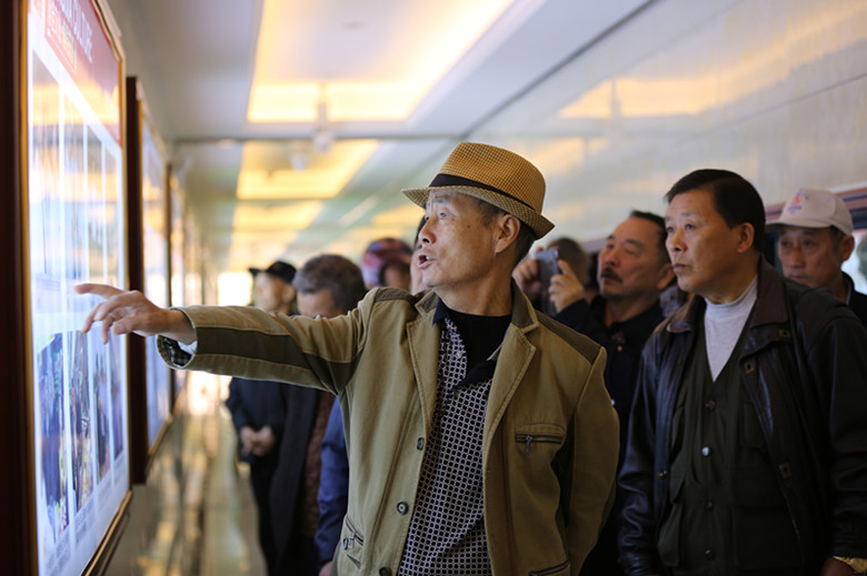 40多位老同志在講解員的帶領(lǐng)下,進(jìn)入產(chǎn)業(yè)園二樓的文化長(zhǎng)廊。