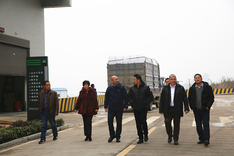 隨后,在湘佳董事長兼總裁喻自文、副總裁楊文菊的陪同下,Michael一行來到湘佳食品產(chǎn)業(yè)園,實地考察湘佳屠宰加工冷鏈生產(chǎn)線,先進的家禽屠宰流水線、湘佳文化長廊等等都給遠道而來的客人們帶來了視覺上的震撼。