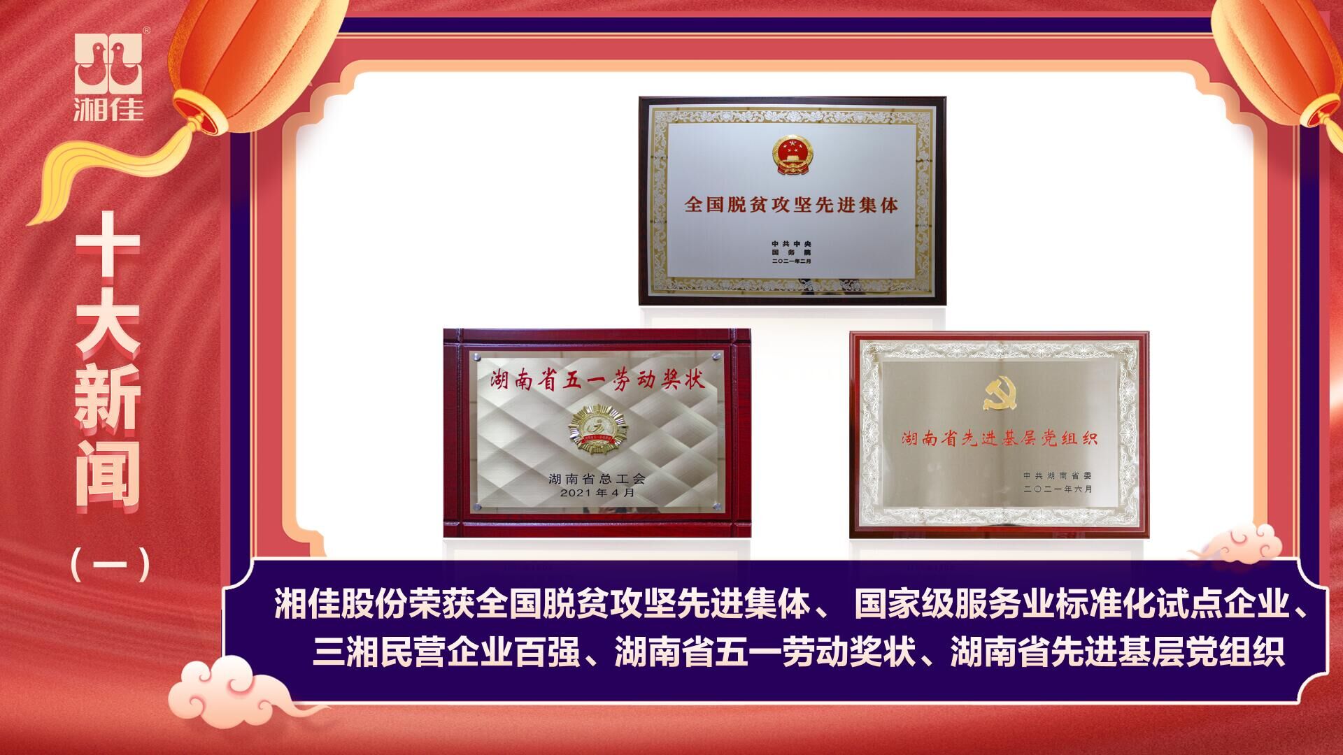 這一年,湘佳股份不斷“從內(nèi)打破”,開拓創(chuàng)新,榮獲全國脫貧攻堅(jiān)先進(jìn)集體、三湘民營企業(yè)百強(qiáng)等多項(xiàng)國家級、省級榮譽(yù)。
